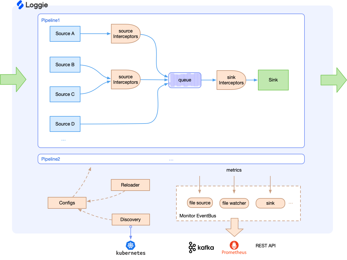 - 依赖Loggie提供传输过程的稳定性和可靠性,保证at-least-once和重试机制,避免数据丢失,以及数据量过多或过大造成的隐患